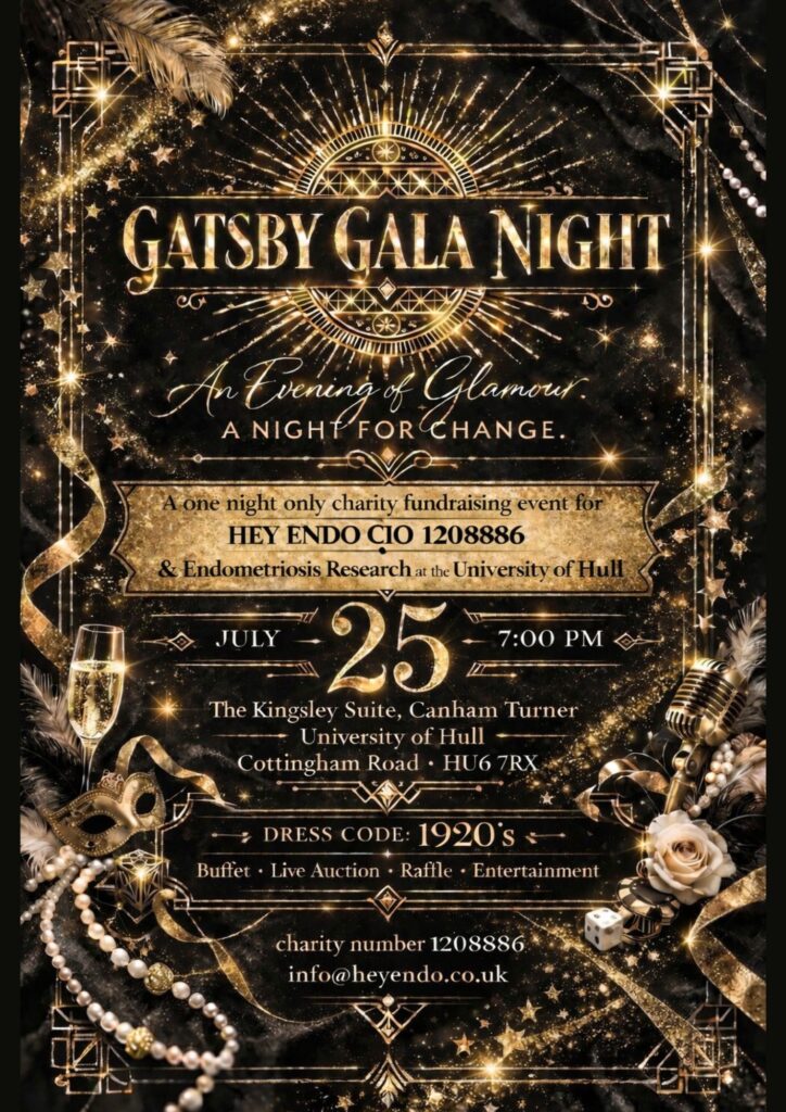 Join us for a spectacular one night only charity fundraising event in support of HEY ENDO CIO 1208886 & Endometriosis Research at the University of Hull, with all funds raised being split 50/50 between both causes.
